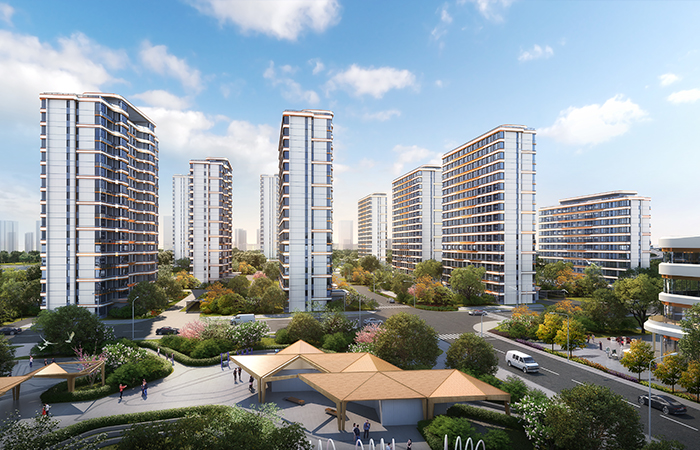 建筑立面上为体现立面的丰富性,分区设计。立面呼应潺潺流水意向,采用弧形优雅曲线,追求建筑柔美灵动之感。综合社区服务中心则在未来感与现代感的基础上,注重增加动感和活力,彰显时尚城市品位。