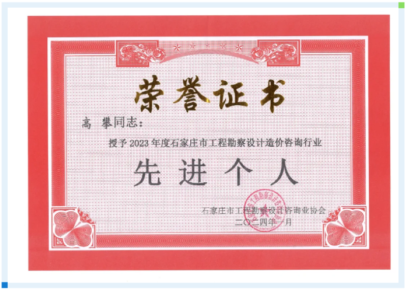 国家一级注册结构工程师,正高级工程师,担任中国勘察设计协会结构分会理事、河北省结构工程学术委员会常务理事、副秘书长等9个协会职务;全国装配式建筑产业专家库专家、河北省工程建设标准评审专家等10个行业专家;30余次参加河北省标准审查、装配式建筑评审等审查工作;组织、参加河北省高水平的工程咨询、工程诊治活动等。